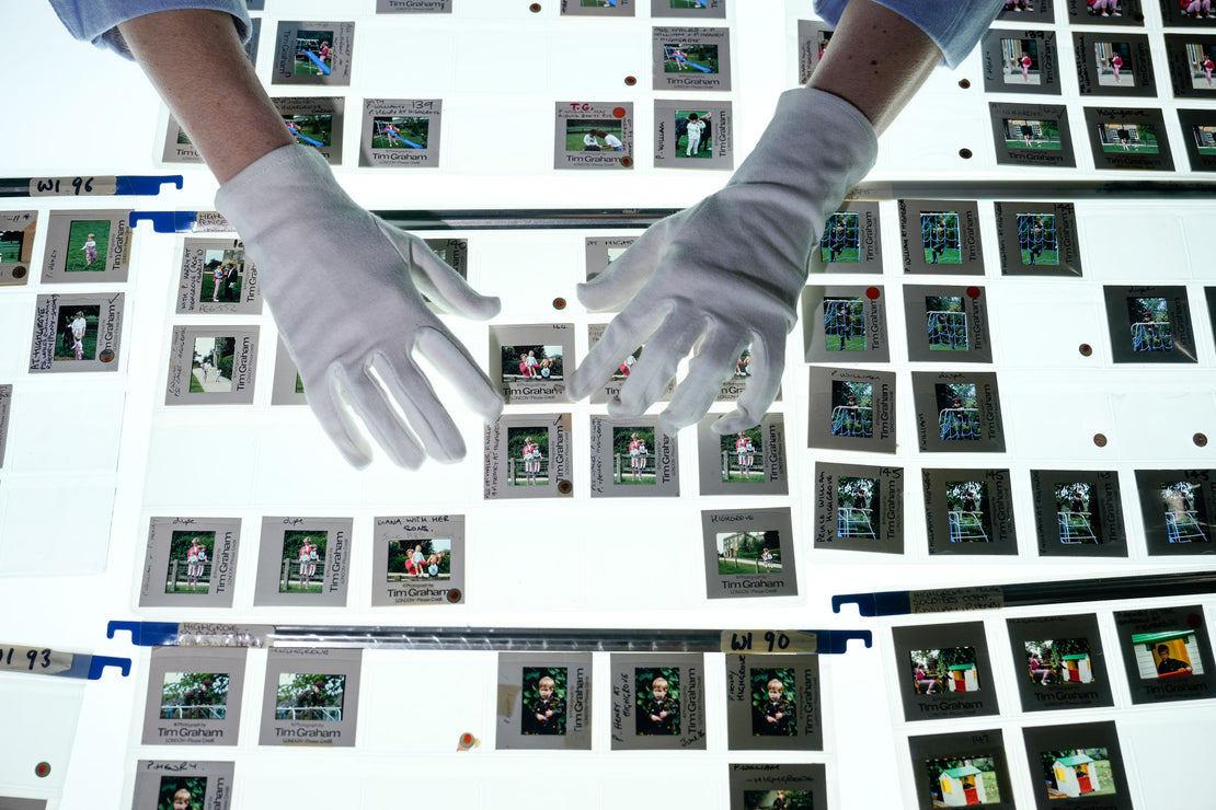Working with transparencies at the Getty Images Hulton Archive, London. (Chris Furlong/Getty Images).