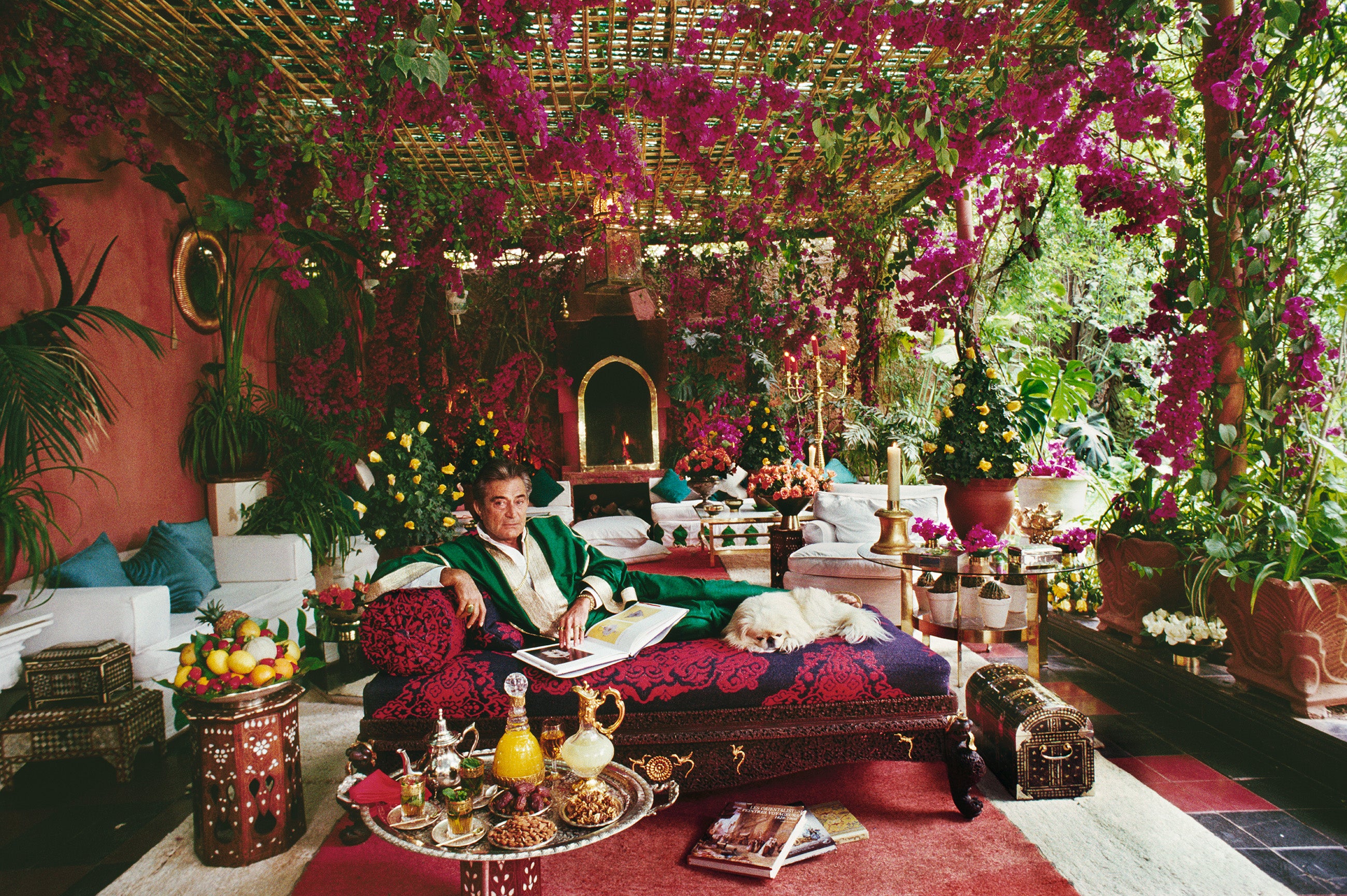 Adolfo de Velasco relaxes on a verandah in Marrakech, April 1988. (Photo by Slim Aarons/Hulton Archive/Getty Images)