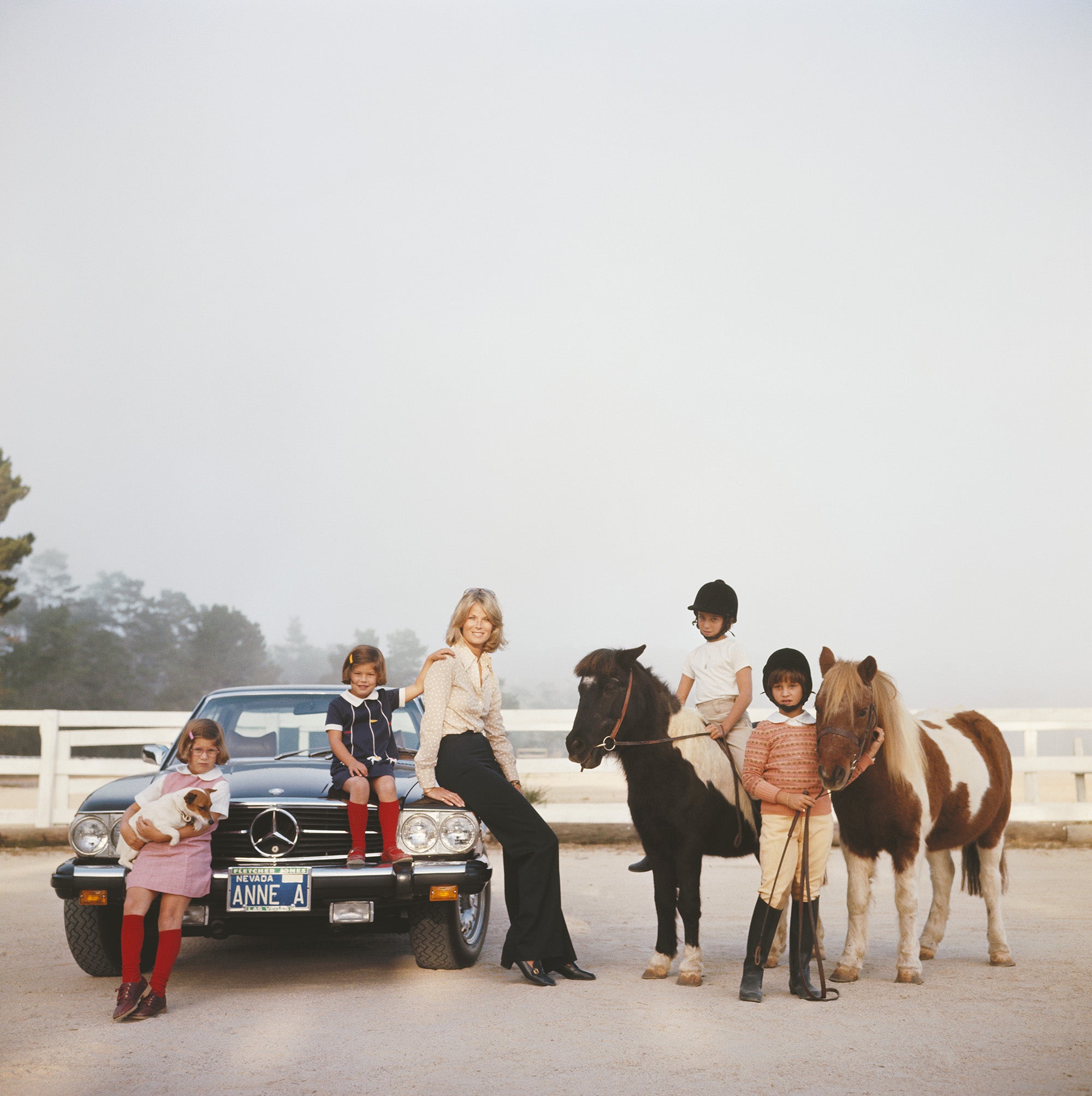 Anne Anka, wife of singer Paul Anka and daughter of Count Charles de Zogheb, with her daughters (left to right) Alicia, Anthea, Alexandra and Amanda, November 1976. (Photo by Slim Aarons/Hulton Archive/Getty Images)