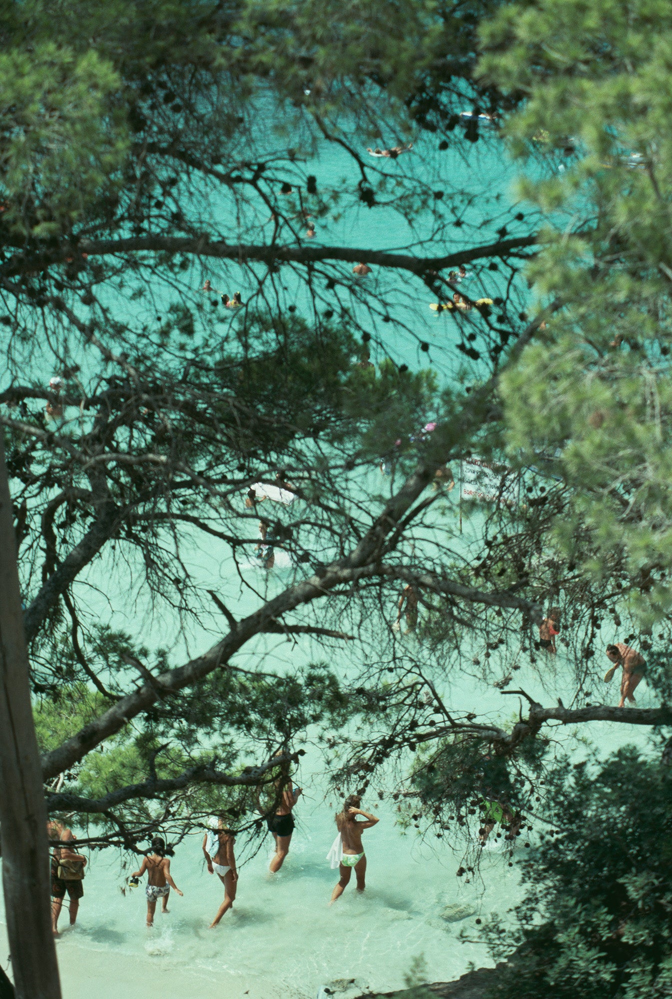 Holidaymakers at a beach near Portinatx, Ibiza, Spain, 1989. (Photo by Slim Aarons/Hulton Archive/Getty Images)