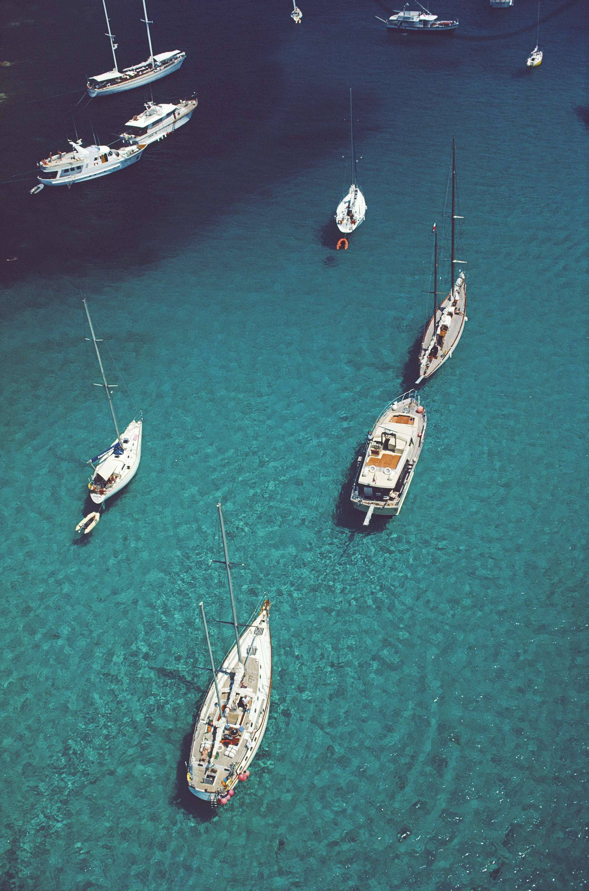 Holidaymakers' yachts find a quiet haven off the Mediterranean island of Cavallo, Corsica, August 1984. (Photo by Slim Aarons/Getty Images)