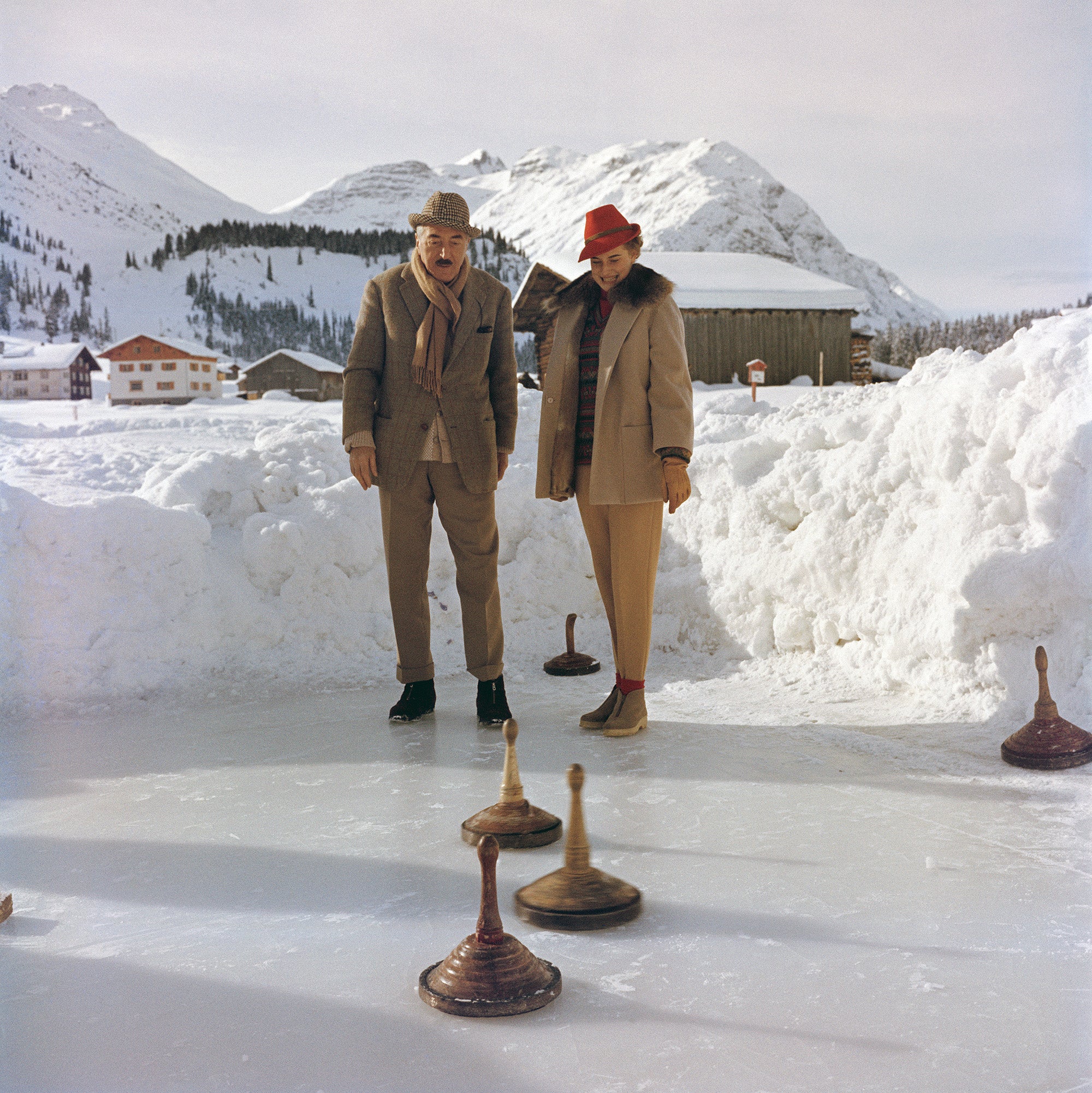 Heinrich Dite and Leonie Heller play a variety of curling in Lech, Austria, circa 1961. (Photo by Slim Aarons/Getty Images)