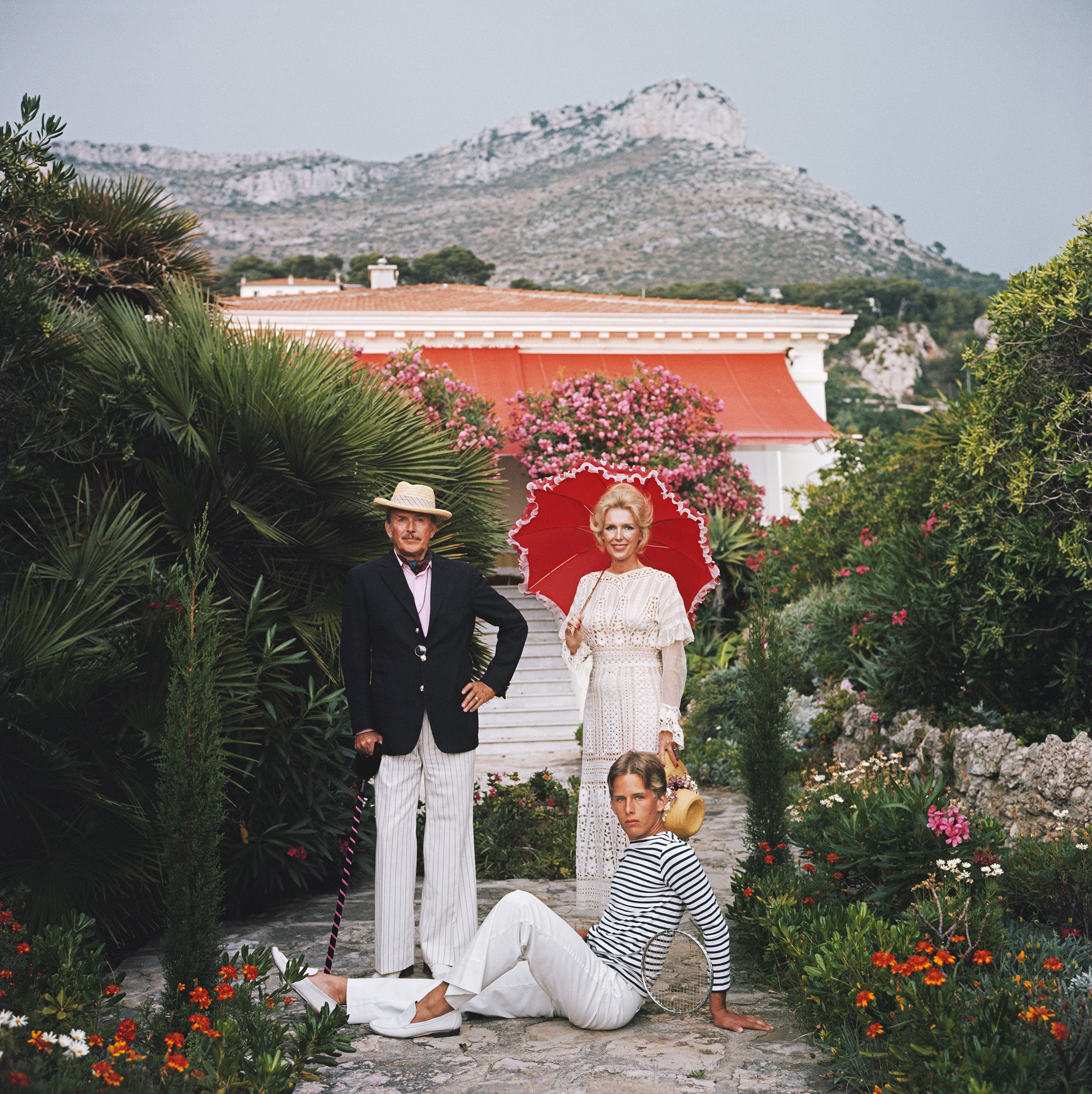 Viscount and Viscountess Paul de Rosiere outside a villa in Monte Carlo, August 1975. (Photo by Slim Aarons/Hulton Archive/Getty Images)