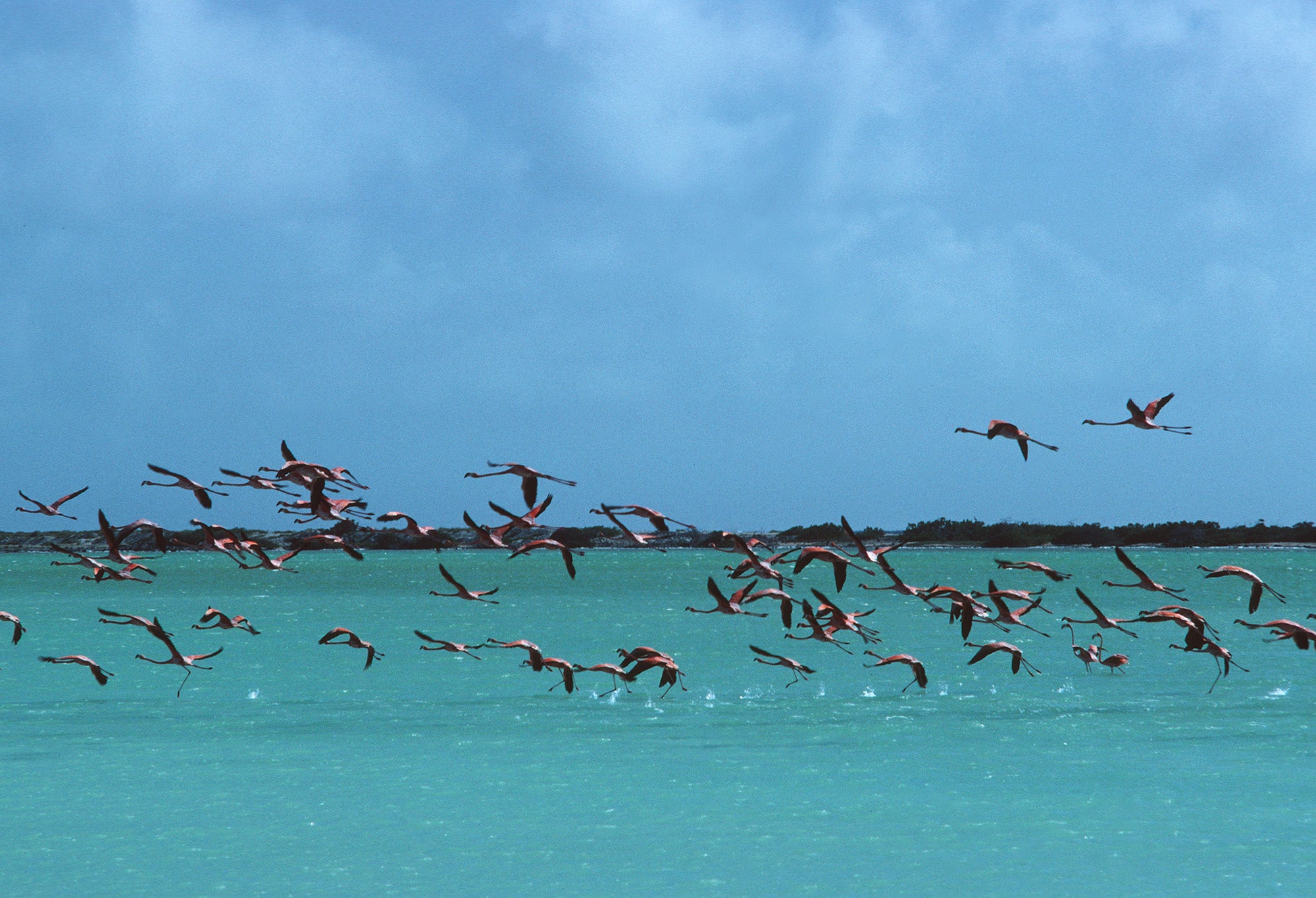 Flamingos in flight, Curacao, Netherlands Antilles, January 1979. (Photo by Slim Aarons/Getty Images)