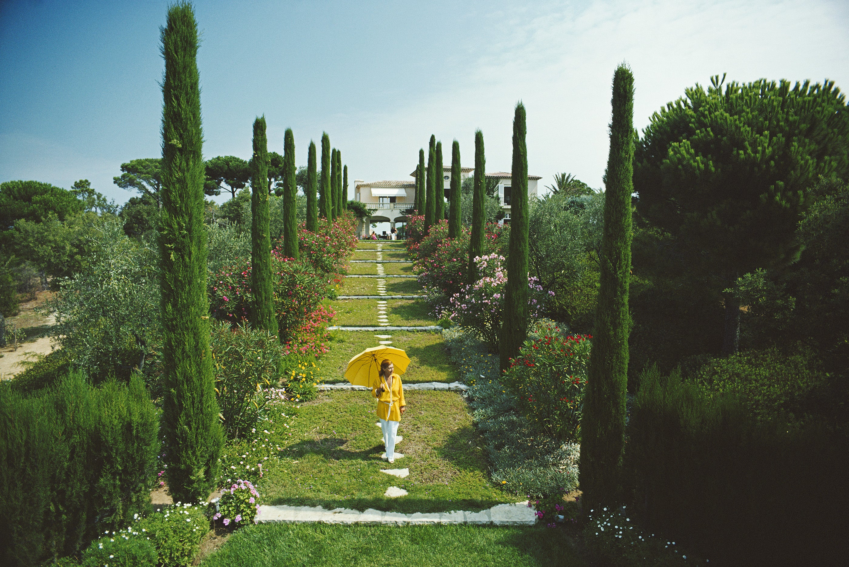 Janine Bril in the garden of Les Sophores, her villa in Saint-Tropez, on the French Riviera, August 1977. (Photo by Slim Aarons/Getty Images)