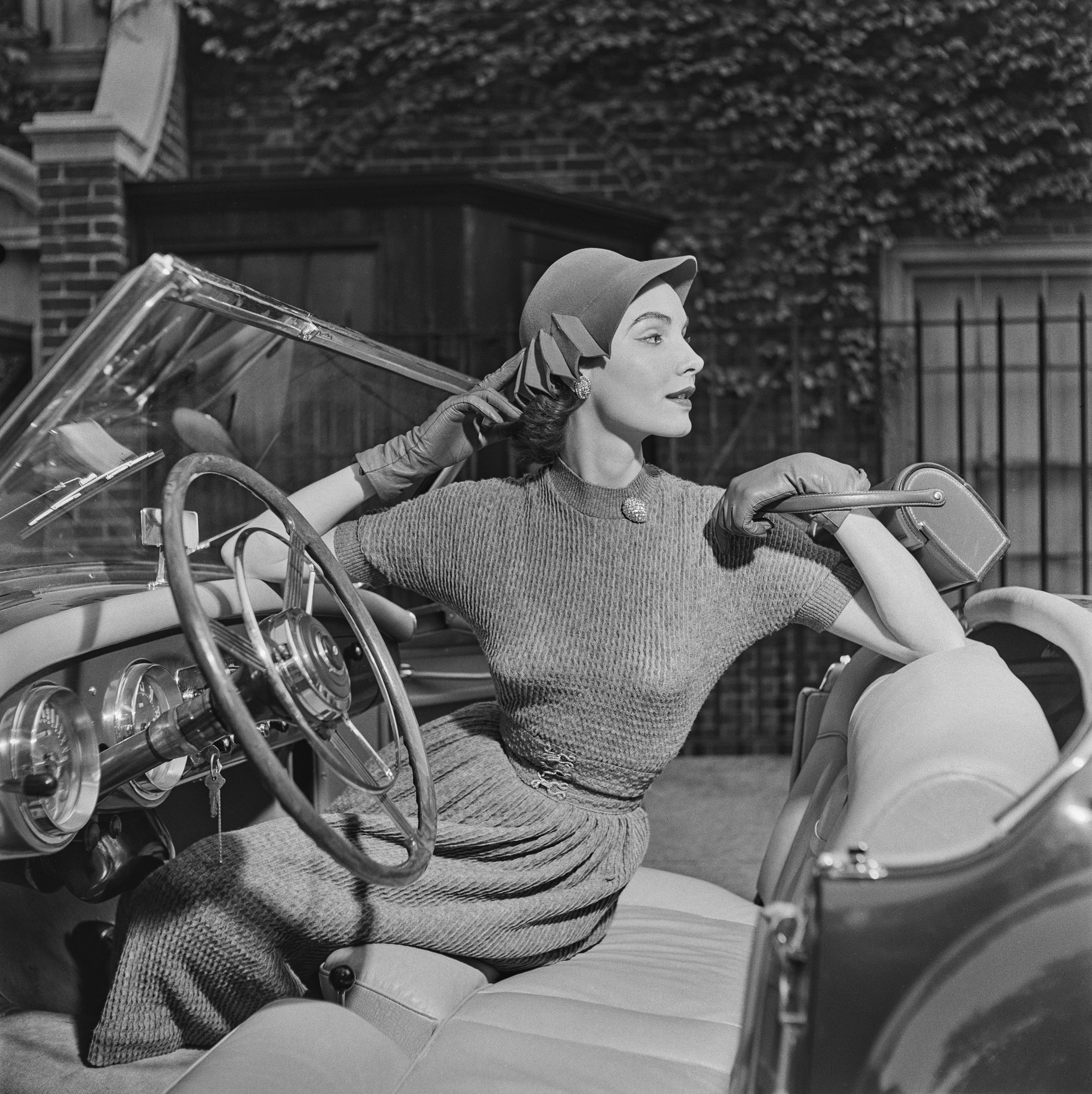 A young woman modelling for a Saks Fifth Avenue catalog shoot, circa 1955.