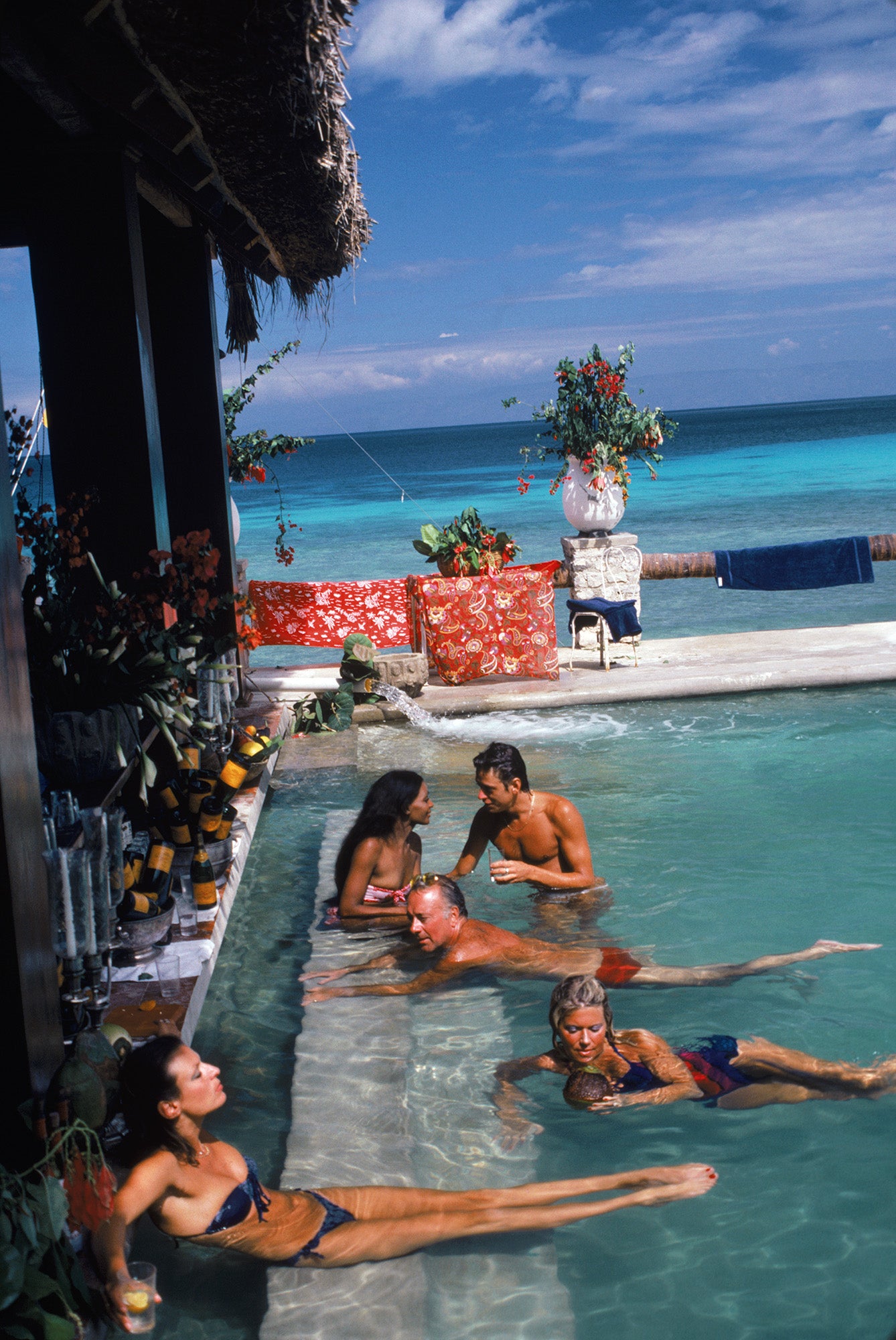 People relaxing in the bar at Plantation Cocoyer, Cocoyer Beach, Haiti, February 1981. (Photo by Slim Aarons/Hulton Archive/Getty Images)