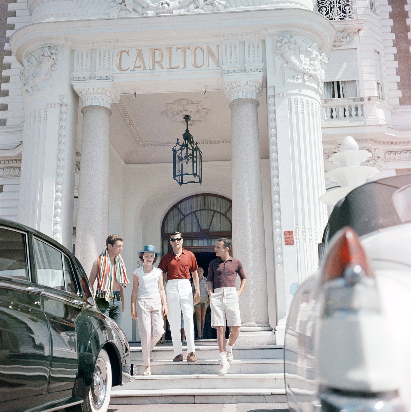 Guests at the entrance to the Carlton Hotel, Cannes, France, 1958. (Photo by Slim Aarons/Getty Images)